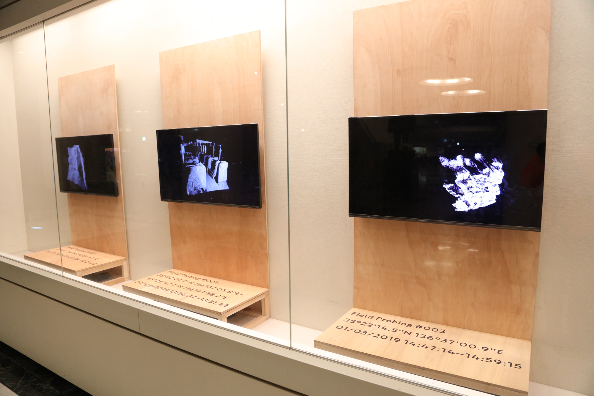 3Dスキャナを用いて風景をスキャンする《Field Probing》は、3Dスキャニング技術を活用した実験的な映像作品である。出来事を記録するための新しい技術が増えることで、表現もまた新しく増える。従来の映像表現とは違い、3Dのデータとして取得した映像は、撮影位置や視野角の変更を可能とすることから、撮影者の身体性や眼差しを消し去ることができる。私は、このような誰のものでもない眼差しを持った、幽霊のような存在となる機械の眼に面白さを感じた。見たことあるようなあたりまえの風景。しかし、見たことがないあたりまえではない風景。