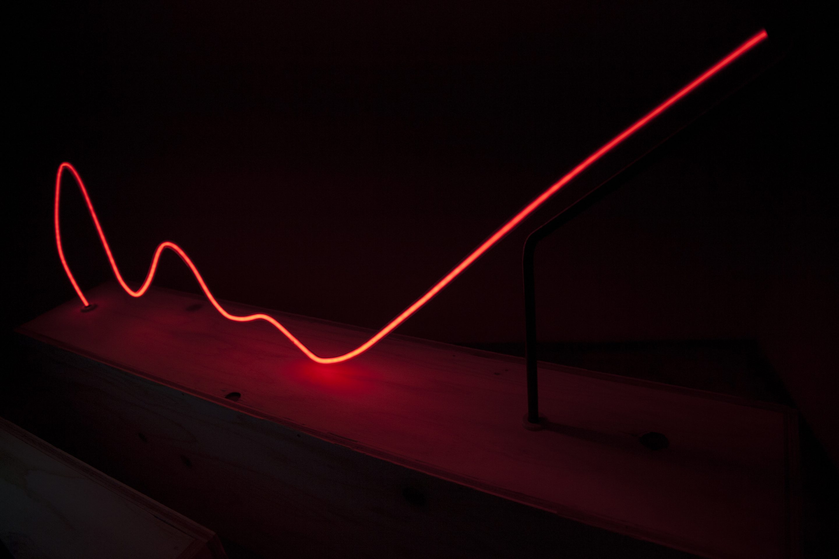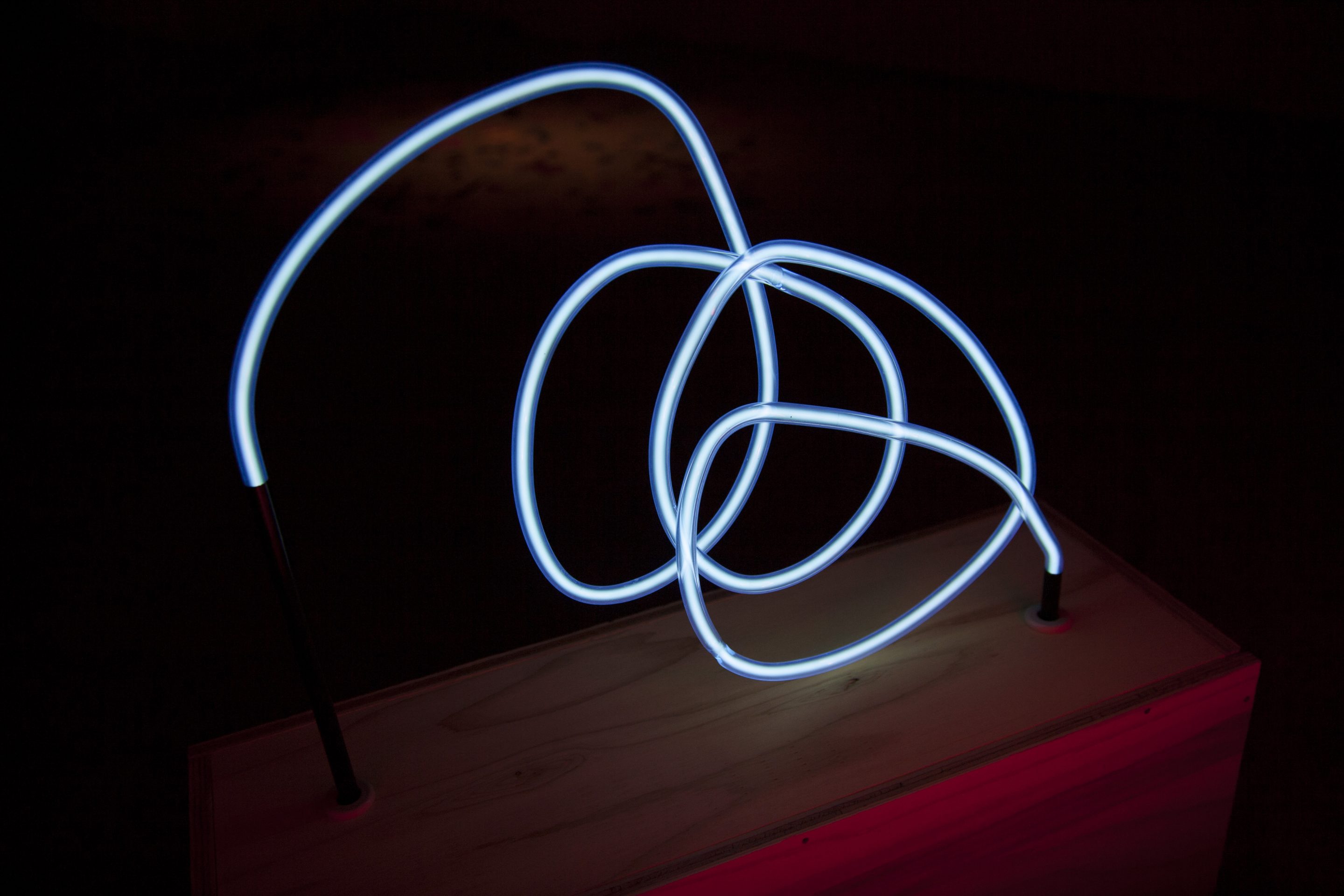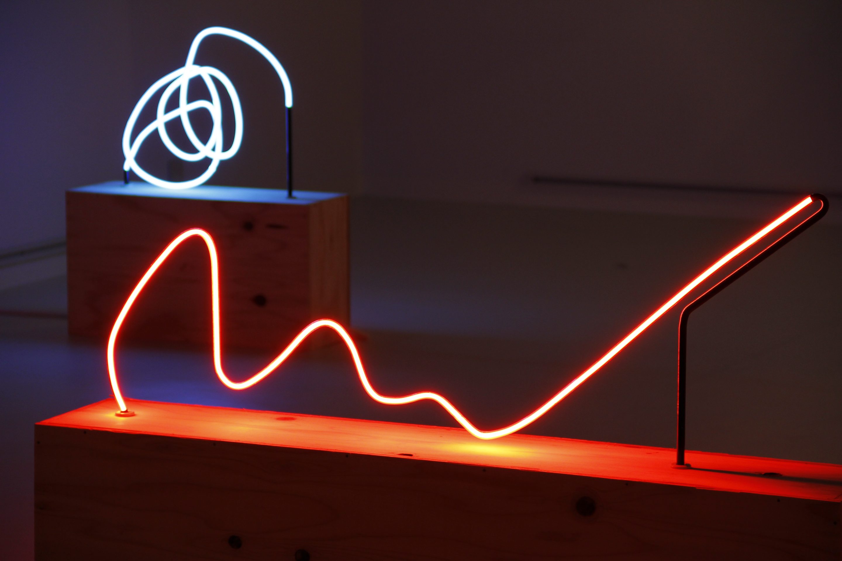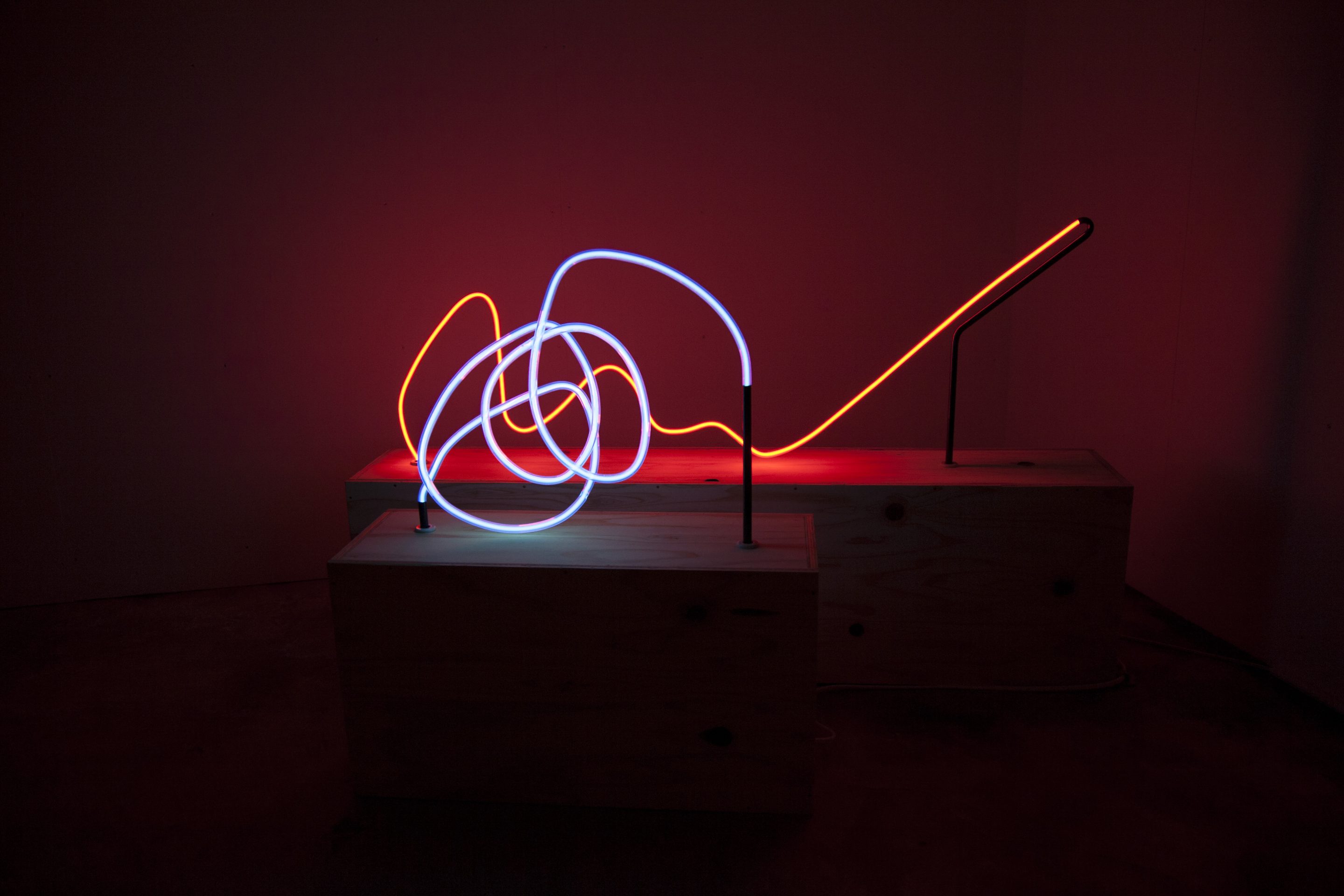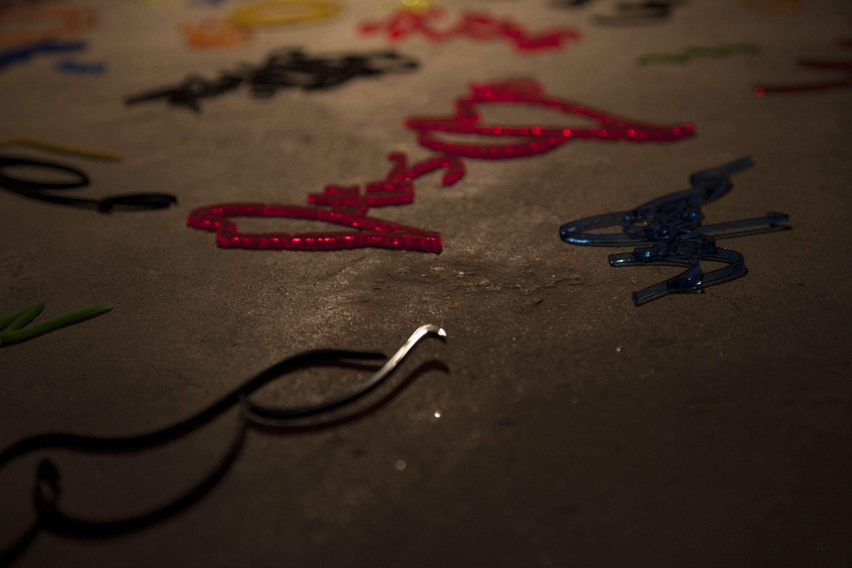 formless works samples the memos you see at stationery and bookstores where people test out writing utensils, and create works by extracting the writing leftover on those memos. By changing the wandering lines and symbols taken from the memos into acrylic and neon tubes, it changes worthless and meaningless trash into valuable materials, and it is that transformation system that is the work. The project approach of formless works, whose sampling is taken from various places and regions, is to expose passing, everyday fragments that everyone has likely experienced (yet, no one can remember what they wrote). You could say that it is a social cropping method that differs from the documentary-type method of narrowing the focus to a specific matter or problem and then investigating society from a different point of view. Rather than a special event, by gathering the experience fragments that are forgotten from daily life as if they flow together with time, and reconstructing them into a work, I believe it is possible to more accurately trace realistic societies.
