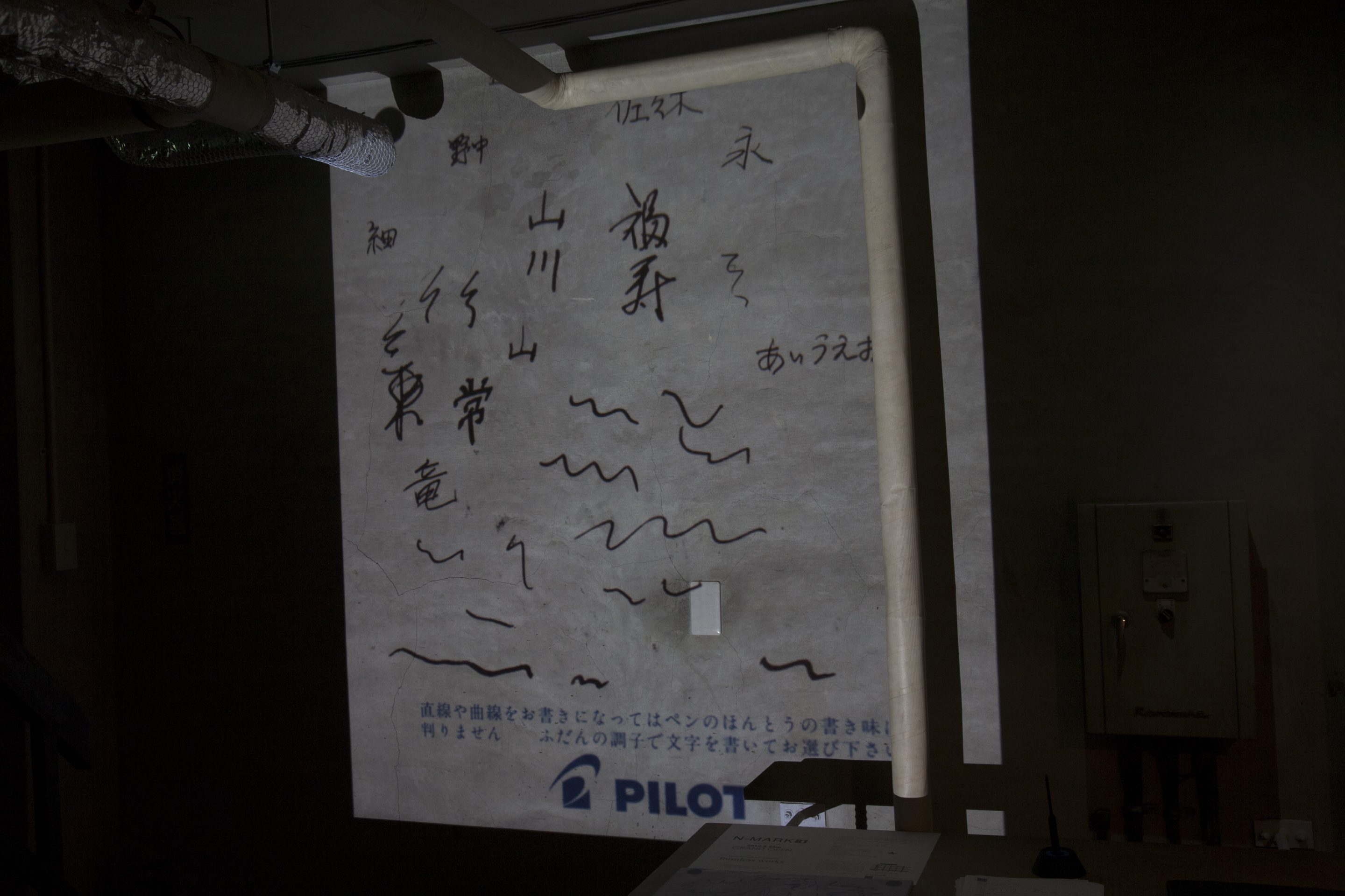 - Neon, Acrylic plate, Memo pad (some scraps of writing, for idleness or practice)