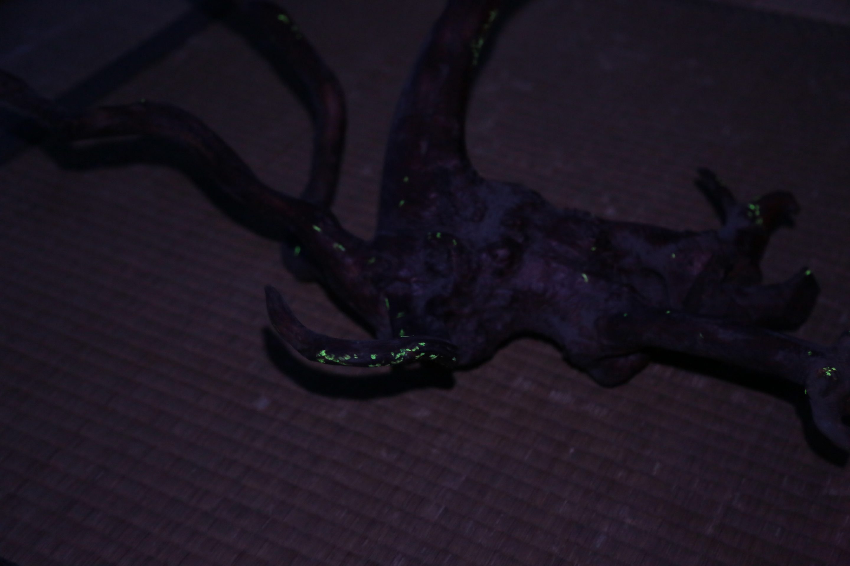- luminous paint on Japanese old furniture and toys, Laser beam of computer-controlled
