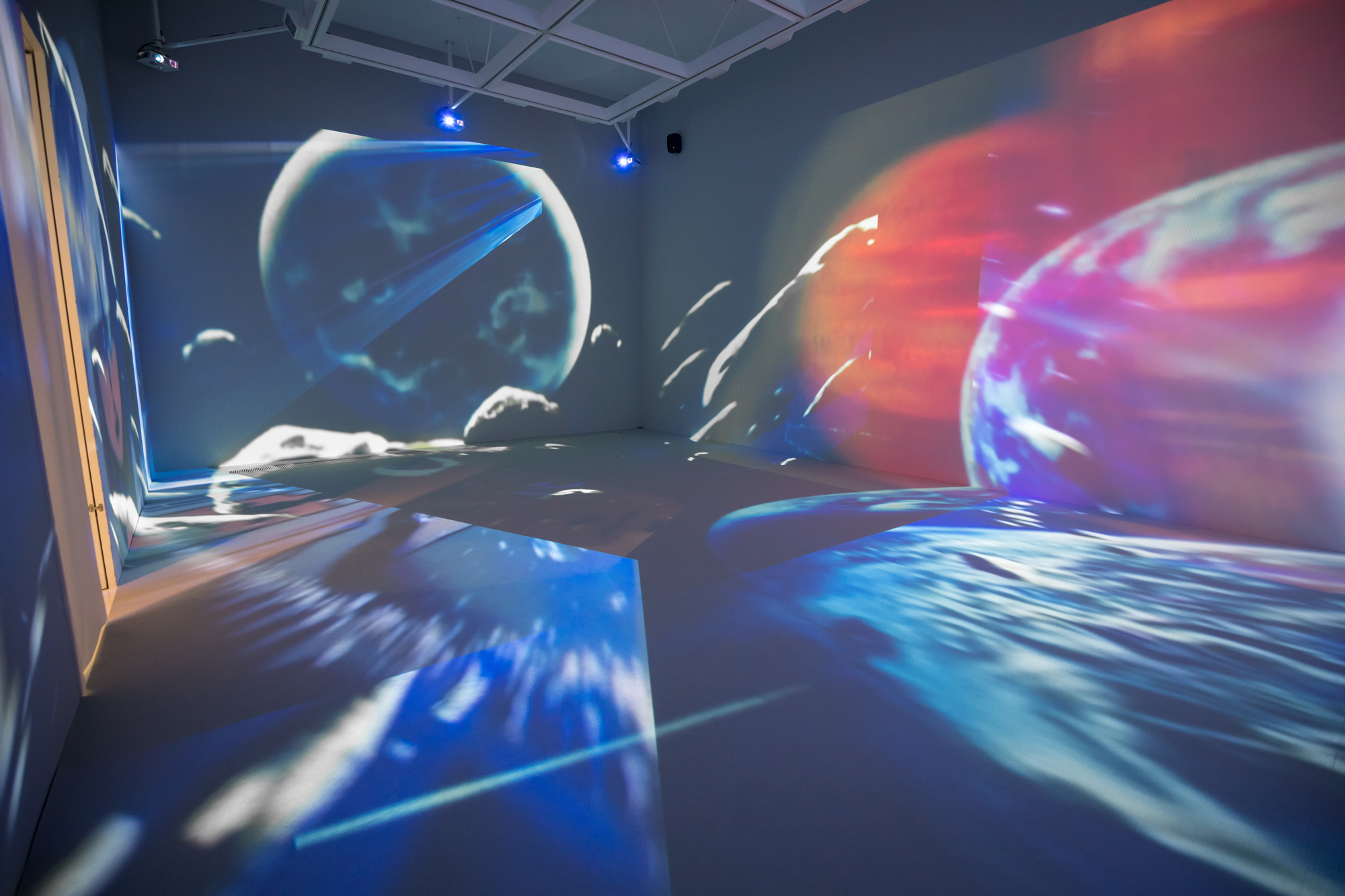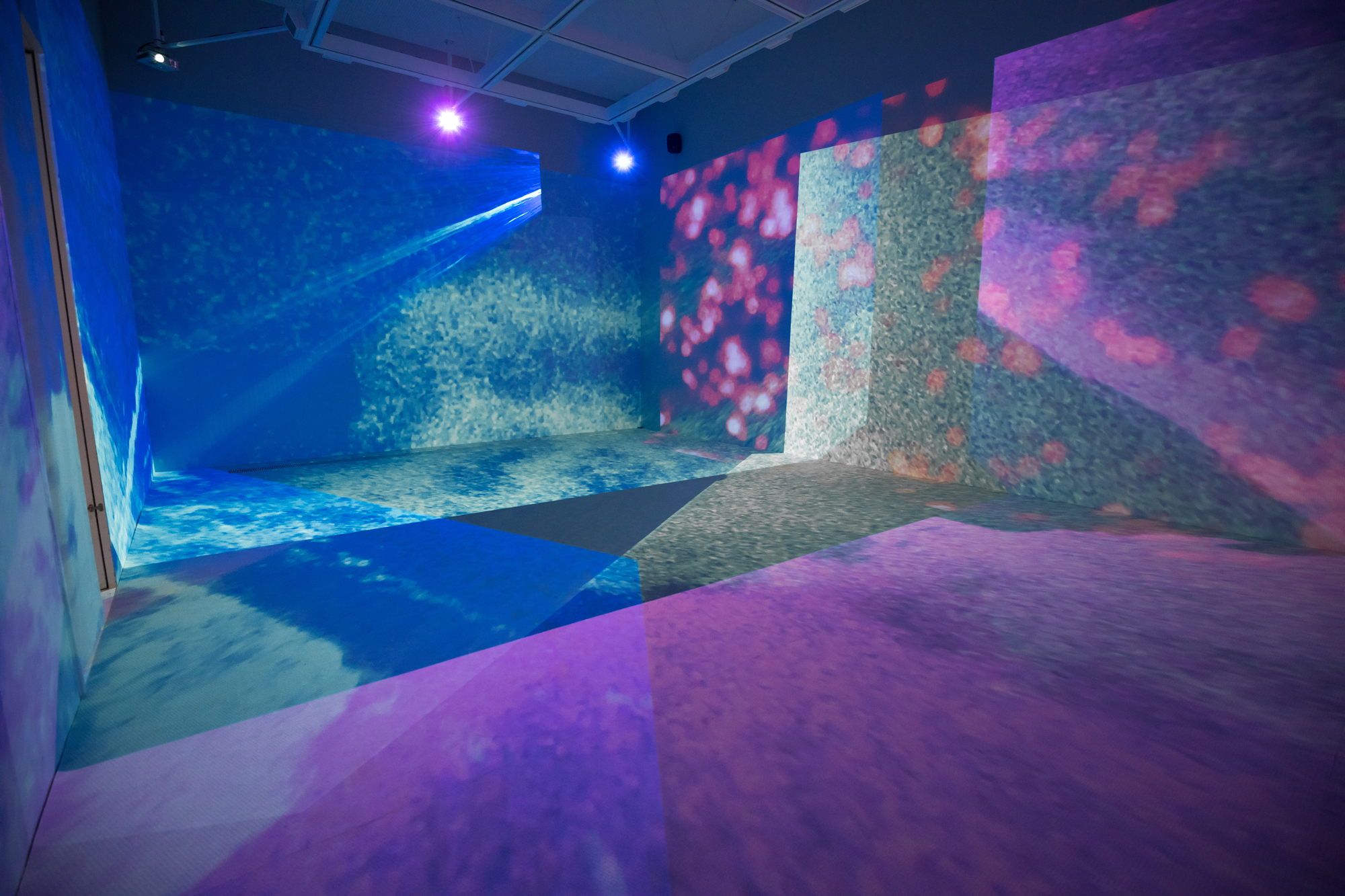 空間全体から映像を体験できるような立体的な編集を試み、重なり合う複数の映像から新たな物語が立ち現れる映像インスタレーションとして再構成を行なった。